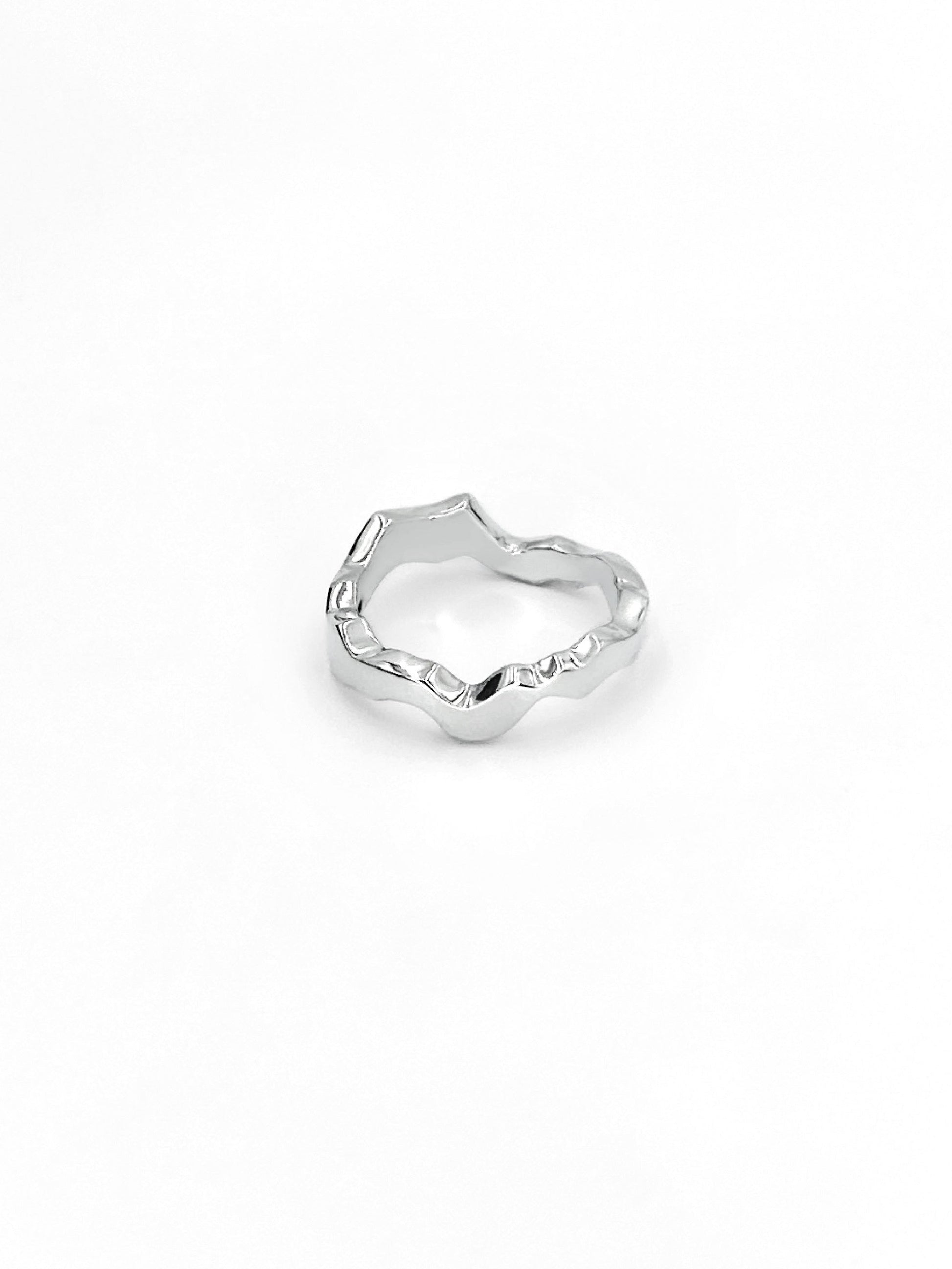 A narrow ring in an irregular shape with a smooth surface.